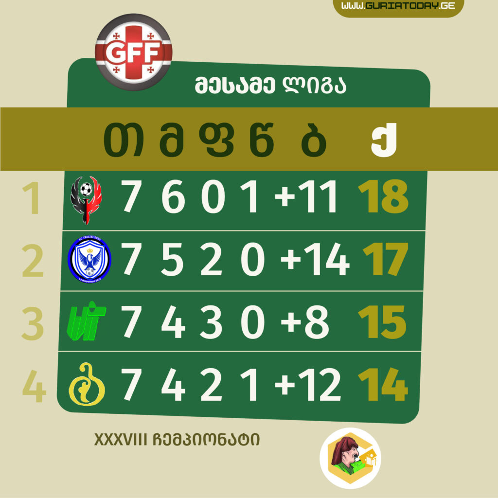 „გურია“ ოთხეულში დაბრუნდა და მესამე ადგილთან ქულა აშორებს