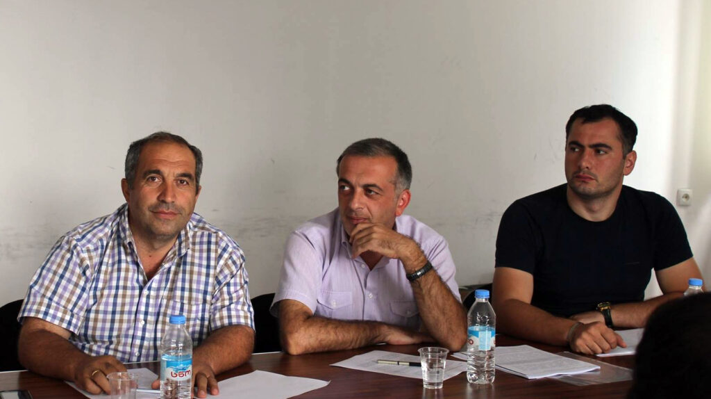 მარცხნიდან: ჯუმბერ ბლაგიძე, კახა ურუშაძე, ალექსანდრე სარიშვილი | ლანჩხუთის საკრებულოს წევრები, 2015 წ.